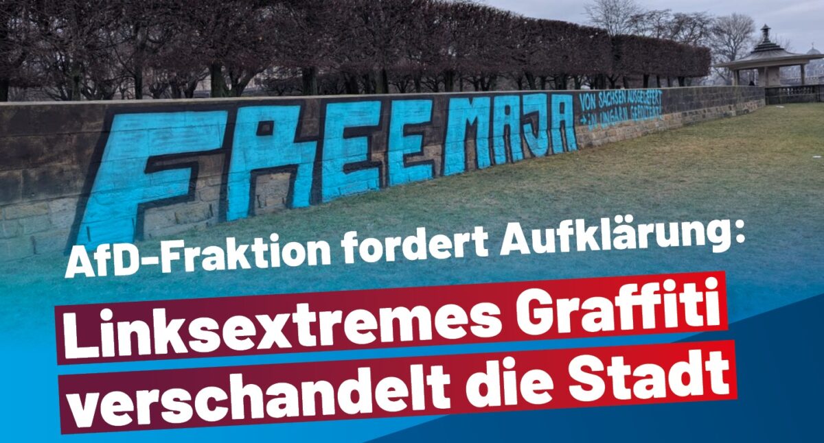 Linksextremisten haben in der Nacht zu Donnerstag, dem 15. Januar 2026, großflächig die Stützmauer am Elberadweg in Höhe des Japanischen Palais beschmiert. Bezüglich des Sachschadens und der Reinigungskosten wird die AfD-Stadtratsfraktion eine Anfrage an den Oberbürgermeister stellen. Stadträtin Dr. Silke Schöps, Fraktionssprecherin für Ordnung und Sicherheit, betont: “Linksextremismus, egal ob das Angreifen und Diffamieren vermeintlicher politisch Andersdenkender, Sachbeschädigung oder gar Terrorismus wie jüngst in Berlin, gehört mit aller Entschlossenheit bekämpft. Von Polizei und Justiz erwarten wir sorgfältige Ermittlungsarbeit, um die Täter zu fassen, und von der Landeshauptstadt Dresden, dass die politische Schmiererei schnellstmöglich entfernt wird.”
